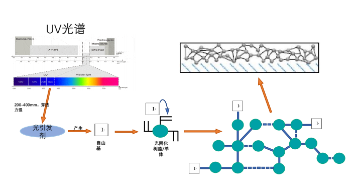 液态可以改变成固态的物性,当UV胶水吸收到足够的能量后即发生相变,